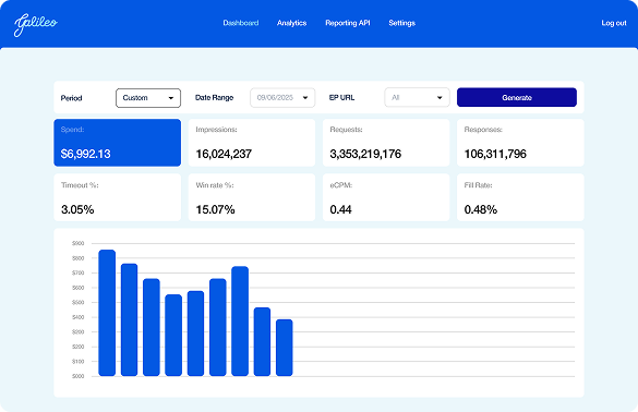 Everything we learned building and monetizing games, we put into Galileo. Our AI media intelligence engine analyzes billions of live signals, audience behaviors, and contextual data to optimize every impression, predict performance before a bid is placed, and maximize yield for our supply partners.